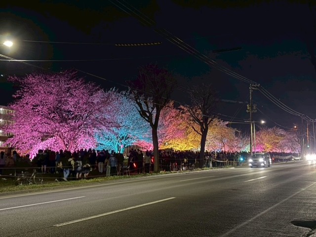 先日、新川通りの桜のライトアップを見に行きました。とても綺麗で感動しました。